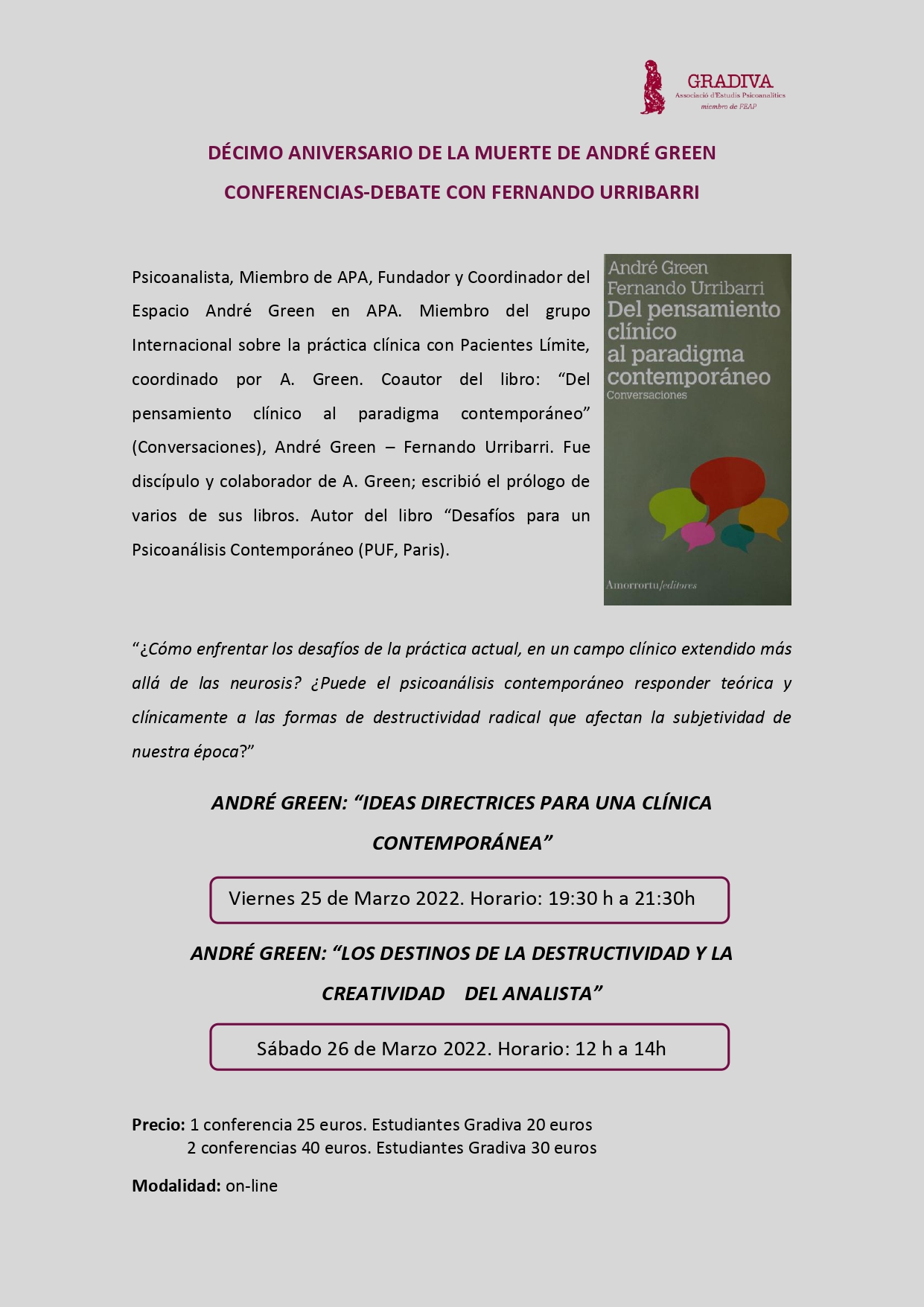 Conferencia - Debate con Fernando Urribarri Marzo 2022 Conferencia - Debate con Fernando Urribarri Fecha:Marzo 2022 Tipo de actividad: Conferencia - Debate El pago debe hacerse en el número de cuenta ES4701821016510200001748 (BBVA).Estado de la inscripción: Cerrada Leer más